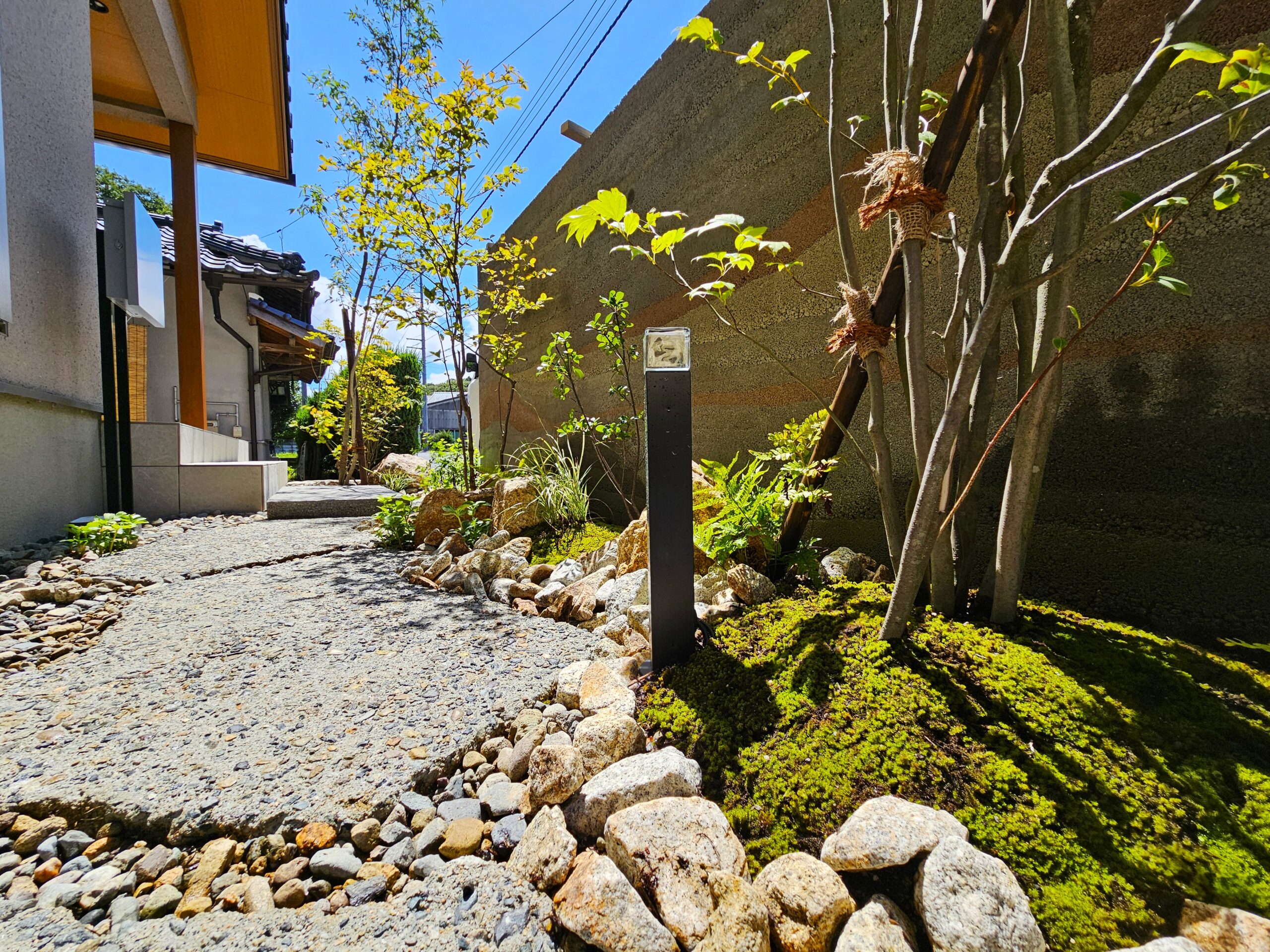 駐車場からの動線も兼ねており、雰囲気を崩さない通路づくり。